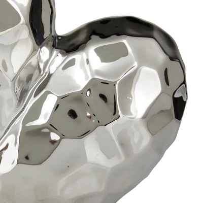 Create a balance surface space and added dimensions with this beautifully crafted sculpture. Create a dashing tabletop display with this beautifully sculpted porcelain heart decor and pair it up with decorative candles and dark toned furniture pieces. Designed with felt or rubber stoppers at the base that prevent scratching furniture and table tops, as well as sliding around. This item ships in 1 carton. Please note that this item is for decorative use only. Porcelain sculpture makes a great gift for any occasion. Suitable for indoor use only. This item ships fully assembled in one piece. This is a single silver colored statue. Glam style.