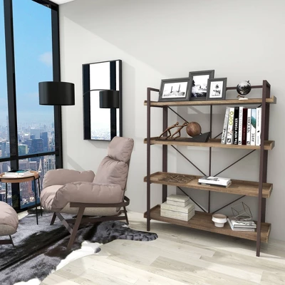 72″ Metal And Wood 5 Shelf A Frame Book Stand Black – Olivia & May
