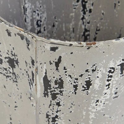 The distressed white finish with decorative chipping and rust accents of this large planter brings an authentic Farmhouse and antique feel to your garden area, patio, or indoor space. The neutral white hue with black markings adds texture while complementing any color palette or pattern. Easily transport indoors and out by the sturdy metal handle. The double planter construction lets you display 2 of your favorite plants side by side for a full foliage look with a Farmhouse feel.