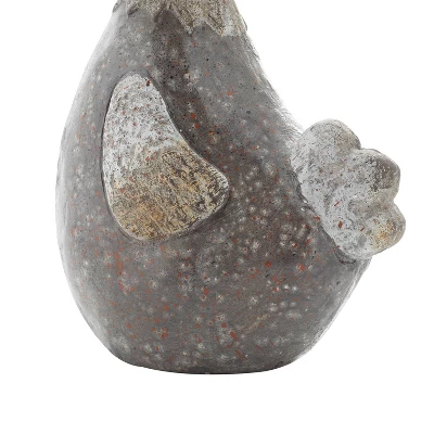 - Features a glazed and stone-like sculpture of a sitting chicken with carved facial and wing details made of 100% polystone material, designed with a steady and flat molded base