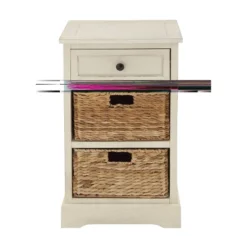 Farmhouse Wood And Wicker Basket Side Table White – Olivia & May