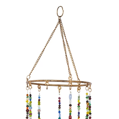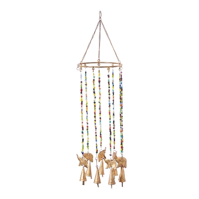 - •Features elephant embellishments in gold finish, designed with gold cone-shaped wind catchers and multi-colored glass beads