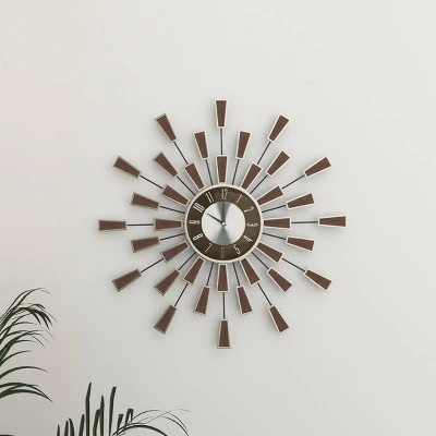 - Wall clock that serves both decorative and functional purposes, an analog wall clock with a beautiful sunburst pattern