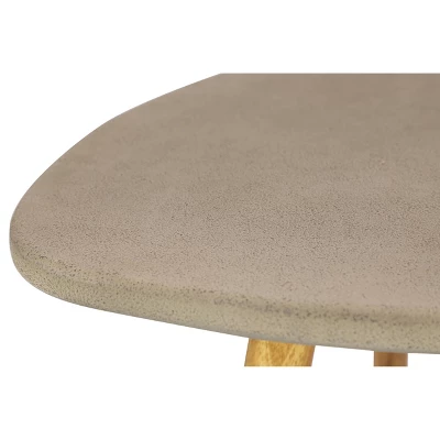- •This triangle acacia side table for outdoor has a solid gray tabletop and natural brown wood tripod legs