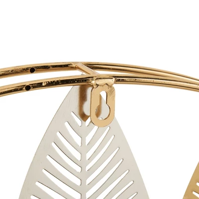 - The round frame of the wall décor highlights the metallic layered leaves with long standing stems