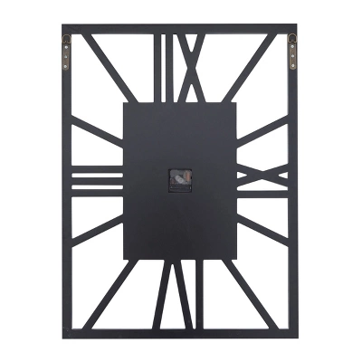 - The silver wall clock features a rectangular structure with glass frame and Roman numerals along with minimalist straight clock hands