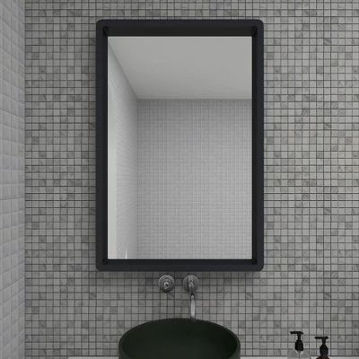 - •This contemporary wall mirror features a minimalistic black-framed rectangle mirror design