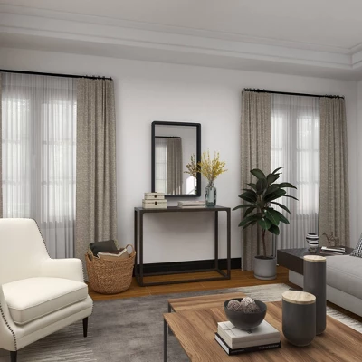 Hang in entryway or living room to both open up the feel of your space and to use as a convenient large vanity mirror. This item ships in 1 carton. Can be hung vertically using the D-rings on the back; nails and screws not included. Suitable for indoor use only. This item ships fully assembled in one piece. This is a single black colored entryway mirror. Contemporary style.