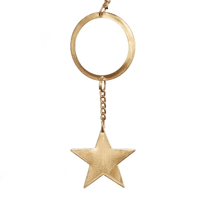 Place this near your window by the door or in any corner space to bring some light charming sound for a soothing harmony. This item ships in 1 carton. Iron windchime makes a great gift for any occasion. Designed for safe and easy installation with metal chain and ring; nails and screws are not included. Suitable for indoor and outdoor use. This item ships fully assembled in one piece. Made in India. This is a single gold colored wind chime. Eclectic style.