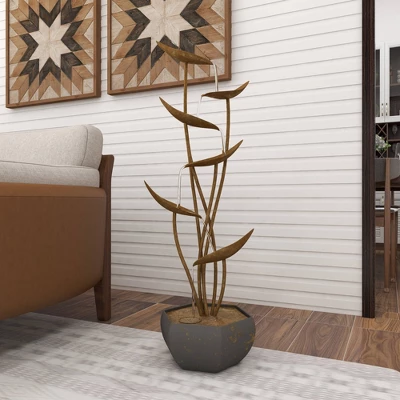 A creative way to add a welcoming look with bold design into any space in your home. Soothing to listen to and even more soothing to see, this fountain is a great way to add a relaxing calm atmosphere to your home. Bring the sound and beauty of nature inside with this metal fountain in your office, living room, or lounge area, patio or den. This item ships in 1 carton. A great versatile decor for indoor or outdoor display but are not rust or weather resistant. Some assembly required. Comes with an on/off switch. Rustic stye.