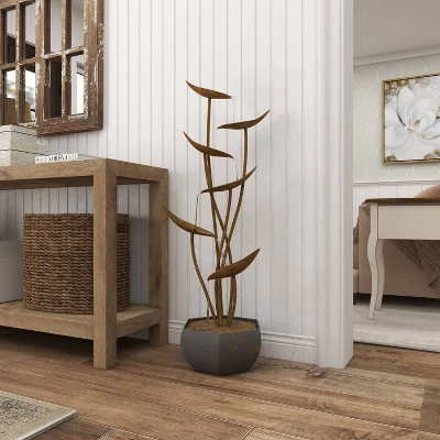 - It features a plant-in-a-pot design crafted from solid iron