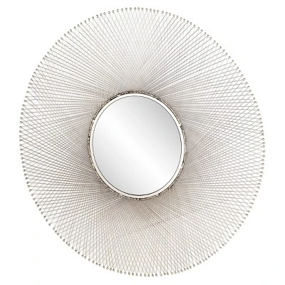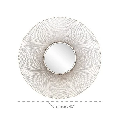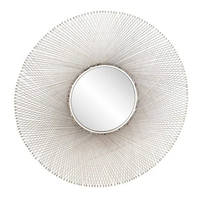 - •This round decorative wall mirror features a web-like geometrical pattern with sleek iron ball tips