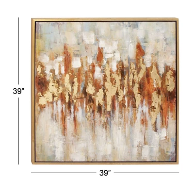 This wall art exude natural beauty and sophistication in both color and composition. Showcase your personality and turn your walls into an art gallery with this impressive wall art. This framed canvas art is an excellent addition to traditional and modern style homes. This item ships in 1 carton. The frame is made from Chinese fir and polystone with a light gold finish. Can be hung vertically using the sawtooths on the back; nails and screws not included. Suitable for indoor use only. This item ships fully assembled in one piece. This is a single gold colored canvas wall art. Traditional style.