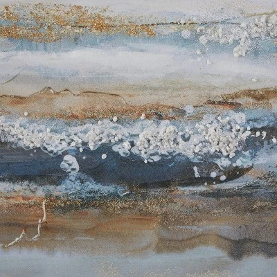 - •A medley of blue, gray, white, and gold hues with a gold frame highlights this canvas wall art set