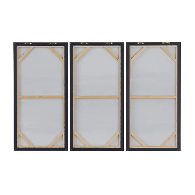 This wall art exude abstract beauty and sophistication in both color and composition. Showcase your personality and turn your walls into an art gallery with this impression wall art. Bring contemporary art to your home space with these framed canvas wall decor displayed on your living room or bedroom walls. This item ships in 1 carton. Can be hung horizontally using the sawtooths on the back; nails and screws not included. Suitable for indoor use only. This item ships fully assembled in one piece. This blue colored canvas wall art comes as a set of 3. Contemporary style.