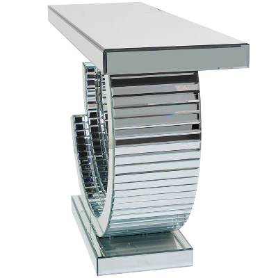 - •Console table features opulent reflective mirror exterior and base with curved pieces covered in small mirrors