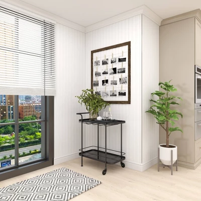 Make your friend thirsty with envy with this bar cart. Looks stylish in your living room or kitchen as a serving tray or as a decor stand. A great addition to any living room and kitchen with contemporary style. This item comes shipped in 1 carton. Suitable for indoor use only. This bar cart features 2 shelves with 14” width and 27.30” depth. Contemporary design.. Maximum weight limit is 30 lbs