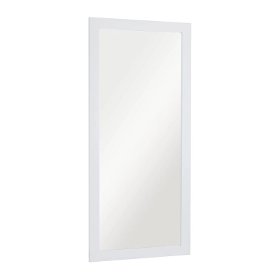 For giving a polished look and creating an illusion of a larger space, this framed mirror is a great addition to your living room or bedroom wall. This item ships in 1 carton. Can be hung horizontally or vertically using the D-rings on the back; nails and screws not included. Suitable for indoor use only. This item ships fully assembled in one piece. This is a single white colored entryway mirror. Contemporary style.