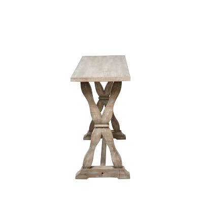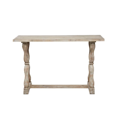 Bring a finishing touch to your home with an inviting appeal with this console table. A sturdy and long lasting construction for a years of enjoyment. Decorate your home spaces with a fresh seat coverage or display surfaces with this charming wooden bench to complete your classic interior design. This item ships in 1 carton. Suitable for indoor use only. This item ships fully assembled in one piece. Maximum weight limit is 100 lbs. This is a single brown colored entryway table. Farmhouse style.