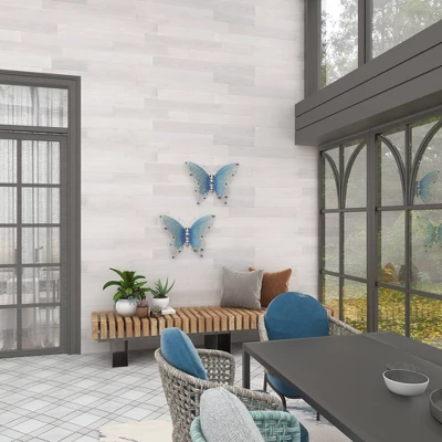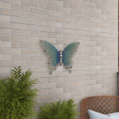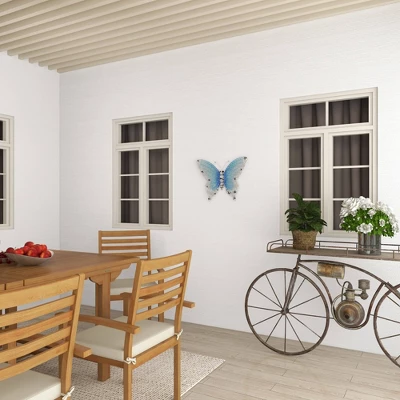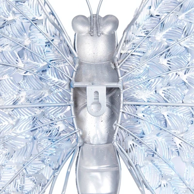 - •Metal butterfly wall decor features a metallic silver body with black highlights and a gradient blue wing design