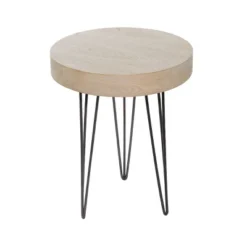 - •Rustic storage accent table is made of wood with rattan baskets and linen lining