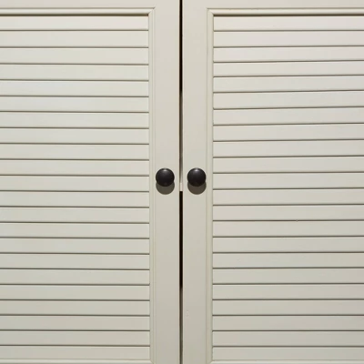 - This stunning wood cabinet features a smooth cream white wooden finish