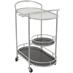 Contemporary Metal 3-Tier Oval Bar Cart Silver – Olivia & May