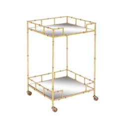 Contemporary Square Bar Cart With 2 Mirrored Trays Gold – Olivia & May