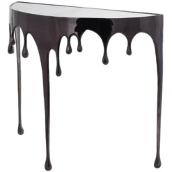 Olivia & May Aluminum Drip Console Table With Melting Designed Legs And Shaded Glass Top