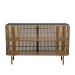 Olivia & May Wood Slim Natural 1 Shelf Console Table With Glass Top And Rattan Shelf Brown
