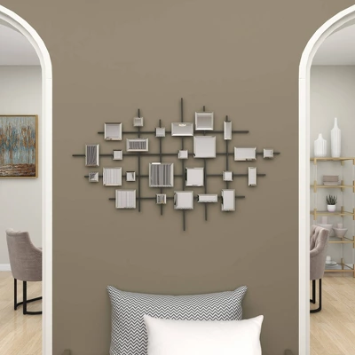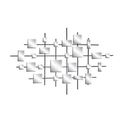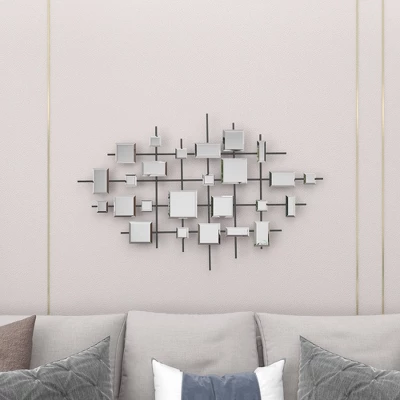 - •This stunning mirror art wall decor showcases square-shaped beveled glass mirrors in various sizes and an iron metal grid backing
