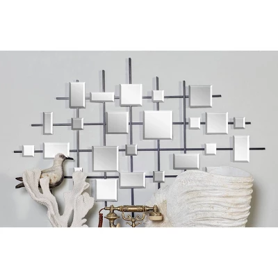 - •This glam-themed big mirror wall art showcases an elegant collection of square-shaped beveled mirrors floating on a lined grid forming an abstract geometric design