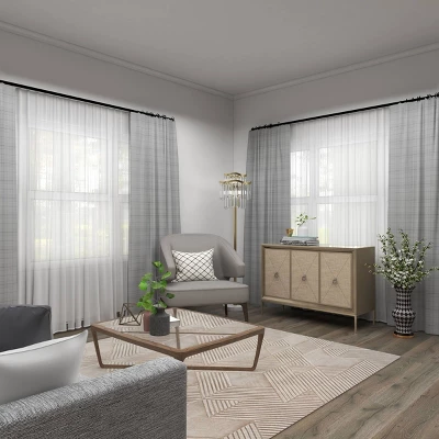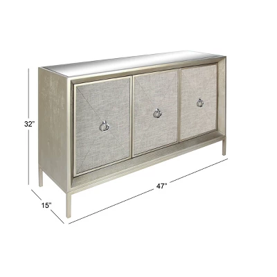 A practical yet stylish upgrade that instantly elevate the look of your room. Maintain a clutter free zone and stay organize with this chic cabinet. Create an elegant display with this large upholstered sideboard and decorate it with a metal object on top of books next to a large ceramic vase. This item ships in 1 carton. Suitable for indoor use only. Maximum weight limit is 30 lbs. This is a single cabinet. Mdf cabinet features 2 shelves. Glam style.