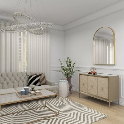 - •This glam cabinet features a rectangular profile with round ring knobs