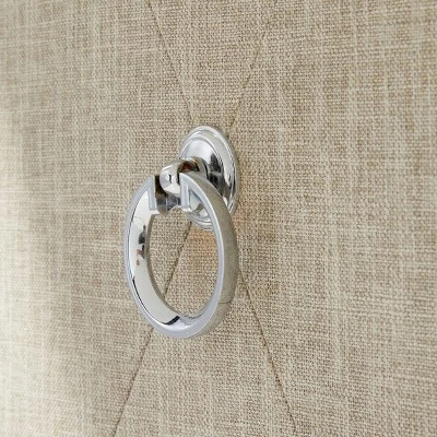 - •Upholstered storage unit features a beveled mirror top with a magnetic closure cabinet doors, a spacious interior and ring handles for easy open