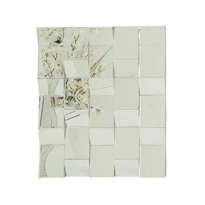 - •This unique wall mirror is constructed of glass panels mounted to a wood frame
