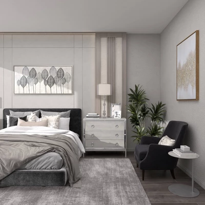 This silver table lamp provides a beautiful light source for your room. With its sleek design and finish as well as easy-on-the-eye light shade, this accent table lamp is the ideal addition to any setting. Designed with felt or rubber stoppers at the base that prevent scratching furniture and table tops, as well as sliding around. Requires 1 Type A E26/Medium (Standard) bulb. This item ships in 1 carton. Comes with a 65″ cord length. Suitable for indoor use only. Table lamp comes with a cream drum shaped shade that measures 14 x 14 x 9 inches. Includes a rotary switch. This is a single table lamp. Glam style.