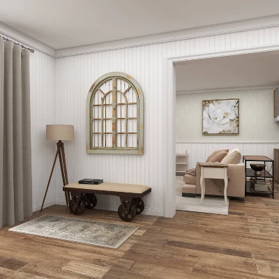 So take a load off and relax on this decorative bench. A small piece of furniture that make a big difference to give your home an instance refresh. Rectangular upholstered bench will complement light colored sofa with other natural wood decor for the perfect rustic look. This item ships in 1 carton. Full metal frame comes with functional wheels for smooth movement. Suitable for indoor use only. Some assembly required. Maximum weight limit is 400 lbs. Can accommodate 2 people. This is a single brown colored entryway bench. Industrial style.