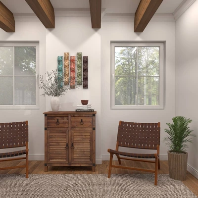 The colorful yet muted tones coupled with the embossed designs add loads of texture and pops of color, so display as a centerpiece to tie your space together. This item ships in 1 carton. Can be hung vertically using the keyholes on the back; nails and screws not included. Suitable for indoor use only. This item ships fully assembled in one piece. This is a single multi colored wall sculptures. Traditional style.