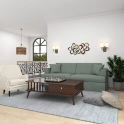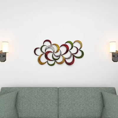 - •Abstract wall art can be installed horizontally, designed with spiraling crescent moon shapes in red, yellow, blue, green, and silver finish