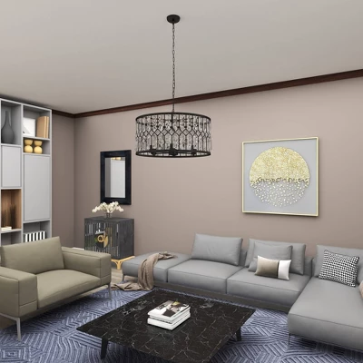 Metal Crystal Embellishments 6 Light Chandelier With Link Style Chain Black – Olivia & May