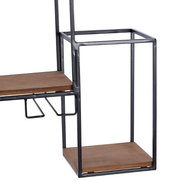 Decorate it with mini potted plants to bring the plain appearance to life. This item ships in 1 carton. Can be hung horizontally using the keyholes on the back; nails and screws not included. Suitable for indoor use only. This item ships fully assembled in one piece. Maximum weight limit is 50 lbs. This is a single black colored wall mounted wine holder. Contemporary style. Black wall wine rack can hold 6 average wine bottles.