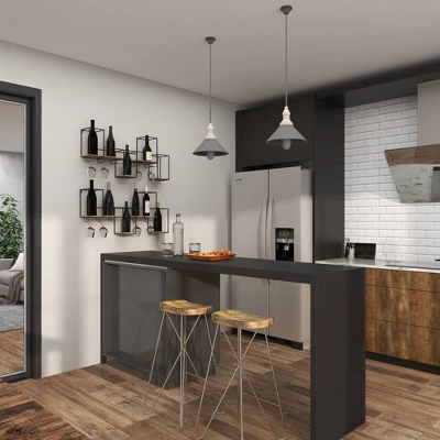- •The polished finish on both the black metal frames and brown wooden platforms produces a clean-cut exterior