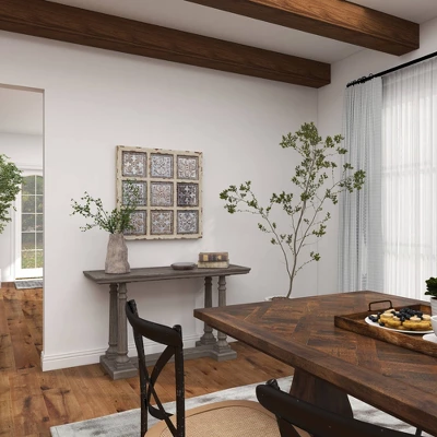 - •This large metal wall art piece adds the antique aesthetic design you’re looking for with the juxtaposition of distressed, chipped-paint wood against cool metal with a rust-look finish