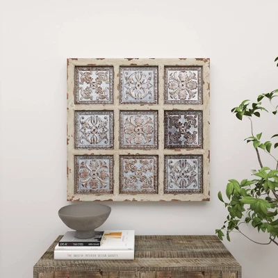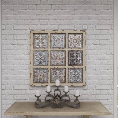 - •Antique designs wall decor features muted colors of white and gray with a distressed finish