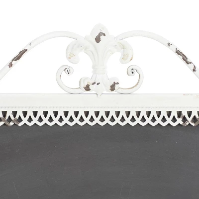 - •This framed magnetic board features a rectangular metal frame with fleur-de-lis scrollwork design