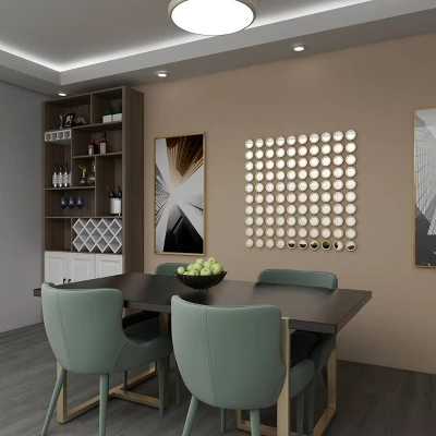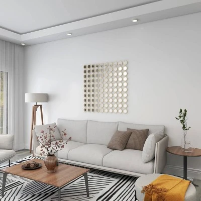 - •Large square wall decor formed by 10 rows of 10 small round mirrors connected by a metal grid