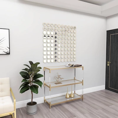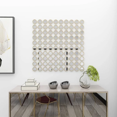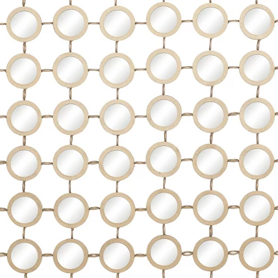 - •Glam wall mirror features a square shape and a uniformed collection of small round mirrors connected by a metal grid