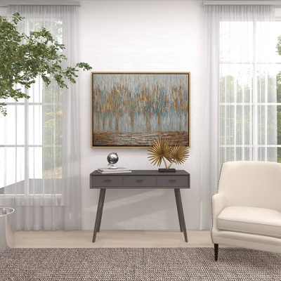 Use this long console table to add style and storage options to a living room or entryway. Bring a finishing touch to your home with an inviting appeal with this console table. A sturdy and long lasting construction that for a years of enjoyment. This console table features 3 drawers that are 12.13″ inches deep. Suitable for indoor use only. Some assembly required. Maximum weight limit is 100 lbs. Modern design.