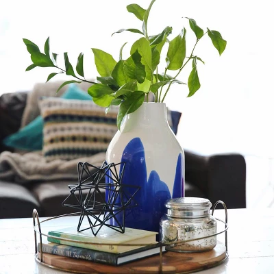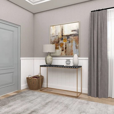 This black geometric metal orb will add modern texture with gilded shine to your tabletops and shelve. The abstract star sculpture features welded iron bars forming a dimensional geometric orb with textured metallic gold accents. The lightweight, simple design, reminiscent of Scandinavian decor himmeli sculptures, work wonderfully as eye-catching shelf decor or table decor anywhere needing artistic filler and movement. This item is shipped in one carton. Suitable for indoor use only. Modern Design.